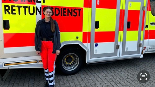 Kim hatte zu diesem Zeitpunkt aber auch ihre eigenen inneren Konflikte zu lösen. Wie bei fast allen Teenagern kamen die entwicklungstypischen Krisen hinzu. Zu diesem Zeitpunkt stand Kim fest in ihrer Entscheidung, ihre schulische Karriere zu beenden. Aber das Erstaunliche: Sie hatte einen Plan. Zur Überbrückung wurde sie Helferin im Seniorenheim „Haus Sonnenschein“ in Burg. Im Oktober konnte sie im Westküstenklinikum (WKK) eine einjährige Ausbildung zur „Pflegehelferin“ absolvieren. Dazu zog sie nach Heide in das Wohnheim des WKKs. In dieser Zeit gewann Kim immer mehr Selbstvertrauen und stellte fest, dass der medizinische Bereich ihr Arbeitsfeld werden sollte. Ihr Ziel: Ich möchte Rettungssanitäterin werden! Kim nahm nun alles selbst in die Hand. Sie informierte sich, welche Voraussetzungen hier zu erfüllen sind. Sie benötigte eine vollständige medizinische Ausbildung und fand diese als MFA (Medizinische Fachangestellte). Nach drei Jahren hat sie die Ausbildung erfolgreich abgeschlossen und dabei ihr Ziel nie aus den Augen verloren. Nach der Ausbildung machte sie konsequent die notwendigen Zusatzqualifikationen, um Rettungssanitäterin zu werden.